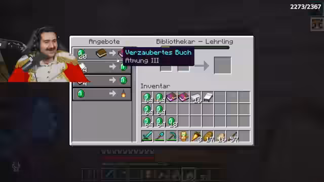 01:49:58Ein Händler wird kontaktiert, um 120 Smaragde zu übergeben. Nach kurzer Verwirrung über die Verfügbarkeit bestätigt der Streamer die Bereitschaft zur Übergabe. Er begibt sich zur Basis von Noriax und plant, mit einem Boot zum Handelspartner zu fahren. Währenddessen bewundert er einen beeindruckenden Bau und erkundigt sich nach dem Schöpfer. Es folgt ein genauer Zahlenabgleich: 64 plus 64 ergeben 120 Smaragde, die erfolgreich übergeben werden. Als Bonus gibt der Streamer zusätzliche 39 Smaragde, was bei dem Partner für Begeisterung sorgt. Der Handel umfasst auch Eisenrüstungen und weitere Ausrüstung.