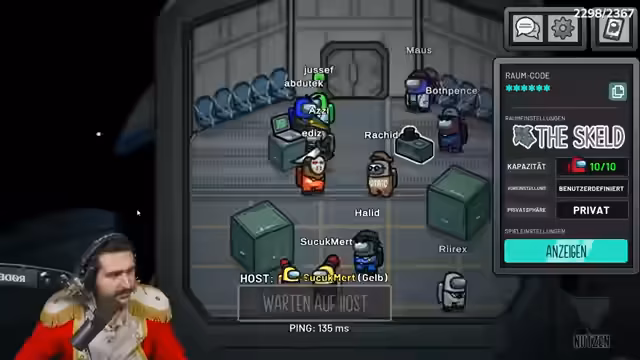 08:24:22Der Streamer organisiert die Among Us-Runde über Discord und wartet auf die Anwesenheit aller Teilnehmer. Es entstehen Diskussionen über die korrekte Lobby-Code-Eingabe und die Einrichtung der Streamer-Mods, während technische Aspekte wie Push-to-Mute besprochen werden. Die Spieler begrüßen sich gegenseitig und bereiten sich auf das Spiel vor, wobei besondere Regeln für die Kommunikation während des Spiels festgelegt werden.