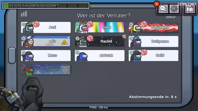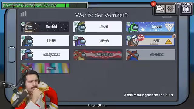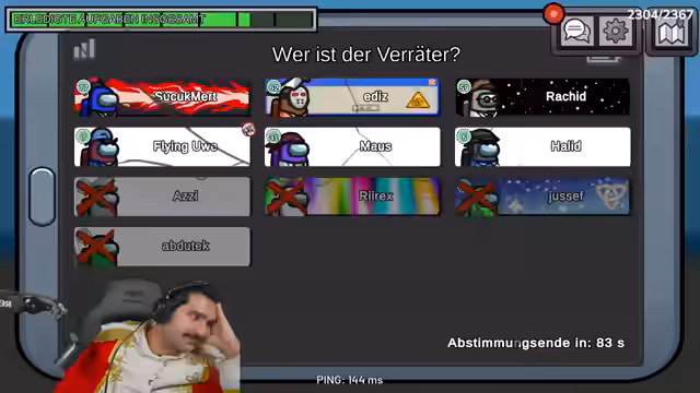 08:28:20Die erste Spielrunde beginnt mit diskutierten Verdächtigen wie Maus und Uwe. Nachdem Matze als erstes Opfer gemeldet wird, entbrennt eine intensive Diskussion über Bewegungsabläufe und Alibis. Rashid und Halid lieferten widersprüchliche Aussagen über ihre Aufenthaltsorte, während der Streamer versucht, die Wahrheit durch Vergleich der Spielerbewegungen zu rekonstruieren und die Impostor-Identifizierung voranzutreiben.