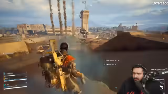 02:07:39Der Streamer spielt ARC RAIDERS gemeinsam mit gtasty. Beide landen am Extraktionspunkt Medical. Sie stoßen auf einen Gegner, den sie nach kurzer Konfrontation eliminieren. Die Szene ist geprägt von hektischem Kampf, Panikrufen und dem Geben von Heilung. Es kommt zu einem Shootout mit mehreren Gegnern, wobei der Streamer verletzt wird. Es wird erwähnt, dass ein Deutscher involviert war und die Kommunikation auf Deutsch lief.