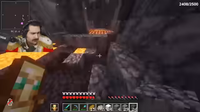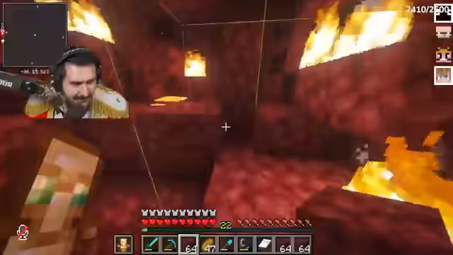02:24:55Im Nether beginnen sie mit der Suche nach Netherite. Sie verwenden TNT, um effizient durch den Nether-Block zu graben und stoßen auf Herausforderungen wie Lava und Fallen. Dabei diskutieren sie Strategien, etwa das Platzieren von Betten vor dem Portal, was jedoch als zu riskant abgelehnt wird. Sie finden erste Netherite-Funde und diskutieren die Menge, die für eine vollständige Rüstung nötig ist (48 Ingotes). Ein Highlight ist der MLG (Mountin-Landung-Game)-Versuch, bei dem sie schwierige Abstiege meistern und mehrere Totems verwenden. Die Gruppe bleibt optimistisch, trotz Lava-Gefahren und Verlusten.