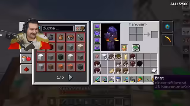 07:27:12Im Netherite-Modus sammelt der Streamer Ressourcen wie Smaragde, Holz und Eisen. Er diskutiert die Nutzung von Enderchests und sucht nach Noriax für Lagerzugriff. Später repariert er seine Ausrüstung, darunter Schuhe mit Federfall IV, und stellt Brot und Papier her. Dabei erklärt er kurz die Bedeutung von Essen als Lebensgrundlage und wie man mit Lava-Fallen und Respawn-Mechaniken effizient arbeitet. Er erwähnt auch, dass er ein Ritual-Set braucht und Kerzen sammelt, um dekorative Elemente zu verbessern.