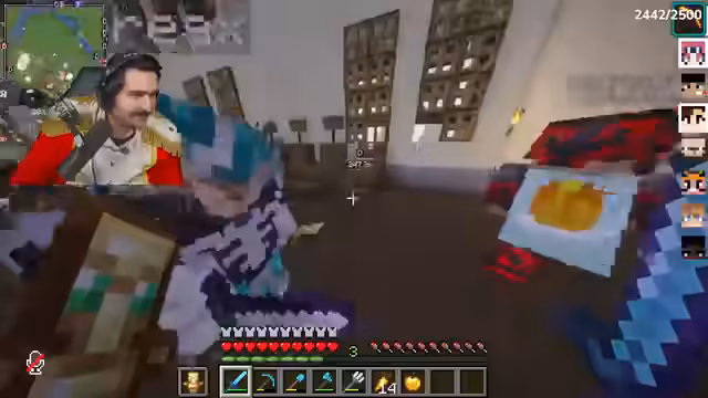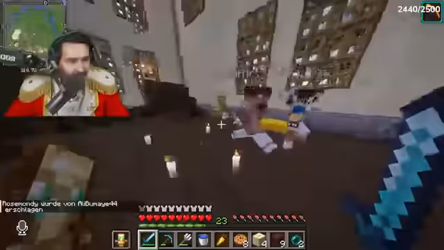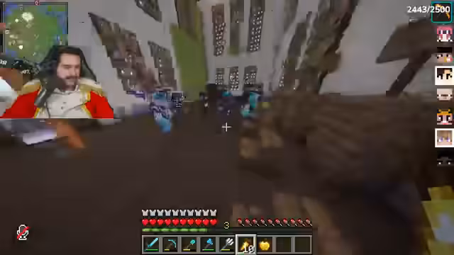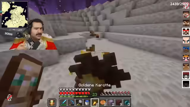 04:50:03Nachdem Ali im End gestorben und alles verloren hat, bietet der Streamer ihm Unterstützung an und teilt Ressourcen wie goldene Möhren. Gleichzeitig kommt es zu Konflikten mit anderen Spielern, die versuchen, die Elytra zu stehlen oder Fallen zu stellen. Es entstehen Diskussionen über Rache und Verrat, insbesondere mit Spielern wie Trimax und Rose. Die Gruppe versucht, ihre Basis zu sichern und Items in Ender-Chests zu lagern, während Spannungen unter den Spielern eskalieren.