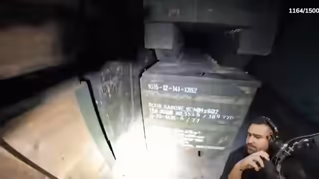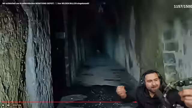 00:32:53Nachdem die Gruppe einen verbotenen Bereich mit dem Schild 'Menschen verboten' entdeckt hat, gelangt sie in ein großes Tunnelsystem. Hier stößt sie auf originale Munitionskisten aus dem Zweiten Weltkrieg. Der Streamer zeigt sich begeistert von dem Fund und betont, dass diese Kisten normalerweise bereits von Sammlern ausgeräumt sein sollten. Die Munition wirkt noch intakt und scharf.