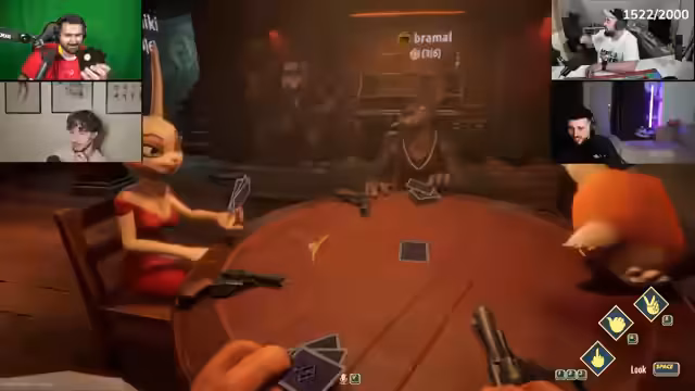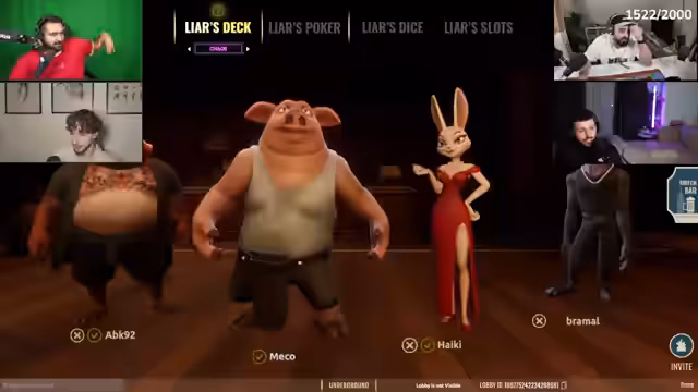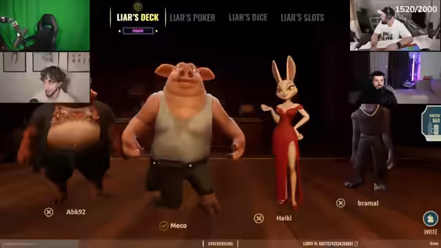 03:14:42Der Stream beginnt mit einem Spiel namens "Liar's Bar", bei dem die Teilnehmer versuchen, Lügen aufzudecken und Entscheidungen treffen müssen. Die Spieler interagieren miteinander, indem sie gegenseitig beschuldigen, zu lügen, und versuchen, durch bestimmte Aktionen wie Drücken von Tasten zu gewinnen. Die Atmosphäre ist intensiv und voller Spannung, da die Spieler sich gegenseitig beobachten und versuchen, Bluffs zu erkennen.