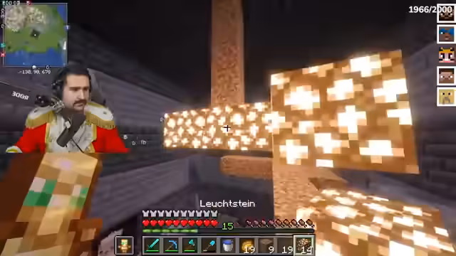 02:38:02Der Streamer sucht aktiv nach Eisen und Diamanten in einem Bergwerkssystem. Er entdeckt ein 'Eisenparadies' mit ergiebigen Erzvorkommen und diskutiert mit dem Chat über die beste Vorgehensweise. Dabei erwähnt er die Nutzung von Glück-III-Verzauberungen. Parallel dazu spricht er über eine Einladung zum Event von Monte und seine Teilnahmepläne.