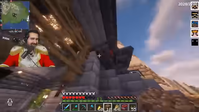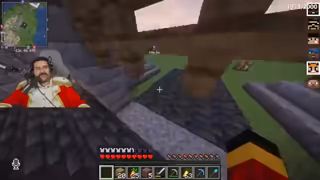 04:59:42Während der Diskussionen konzentriert sich der Streamer auf den Ausbau seiner Basis. Er platziert Laternen, installiert Falltüren und versucht, mit Ketten und schwarzem Eichenholz eine ästhetische Struktur zu schaffen. Es kommt zu Unterbrechungen durch andere Spieler wie Monte, der über die Flagge klärt. Der Streamer organisiert improvisiert Material und reagiert gereizt auf Störungen, während er gleichzeitig versucht, den Bau fortzusetzen. Seine Frustration über zerstörte Glowstone-Blöcke und fehlende Ressourcen wird deutlich, während er den Chat um Hilfe bei der Suche nach schwarzem Eichenholz bittet.