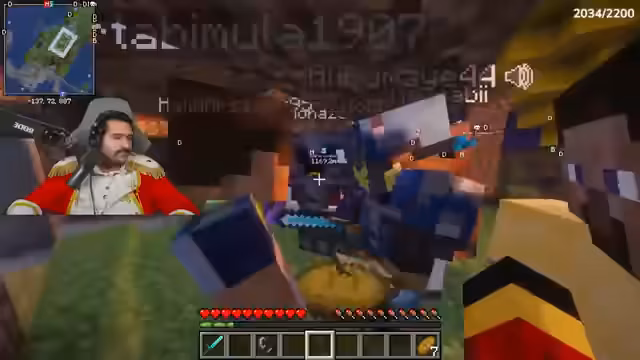 03:25:51In einer Notsituation ruft der Streamer Spieler wie Merck um Hilfe, da seine Sachen in Gefahr sind. Diskussionen über vergangene Konflikte mit Fener und Champions-League-Ereignisse mischen sich in die Panik. Gemeinsam mit Ali und weiteren Spielern versucht er, die zerstörte Basis zu retten. Es entstehen chaotische Absprachen über Ressourcen wie Rack und Spitzhacken, während über Gerechtigkeit und Zusammenarbeit debattiert wird.