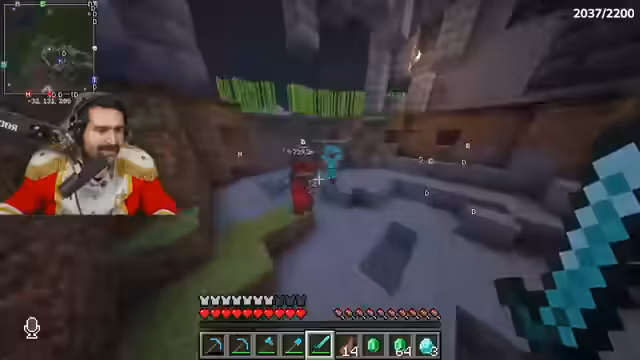 02:32:41Der Streamer führt nun eine gezielte Suche nach Roh Eisen im Untergrund durch und stößt dabei auf eine riesige Höhle, die reich an Eisenerz ist. Beim Abbau erlebt er eine unerwartete Glückssträhne und findet nicht nur zahlreiche Eisenblöcke, sondern auch Diamanten. Bei der weiteren Erkundung der Höhle stößt er auf seltsam leuchtende Blöcke und hört Geräusche, die auf das nahe Vorhandensein eines Warden hindeuten, was die Situation erheblich gefährlicher gestaltet.