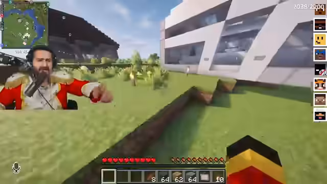 00:39:37Ein konkreter Bauauftrag ist die Umsetzung eines riesigen Nussknacker-Gesichts auf der Spiellandkarte, mittels Bild-zu-Block-Konvertierung durch eine KI. Ein weiterer wichtiger Punkt ist der massive Konflikt um die wiederholte Zerstörung des Kirschblütenwalds durch einen unbekannten Spieler namens Omid. Dies führt zu großer Frustration und Plänen für Vergeltungsmaßnahmen.