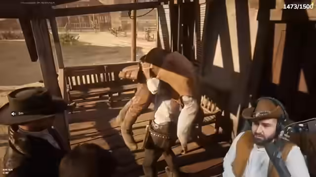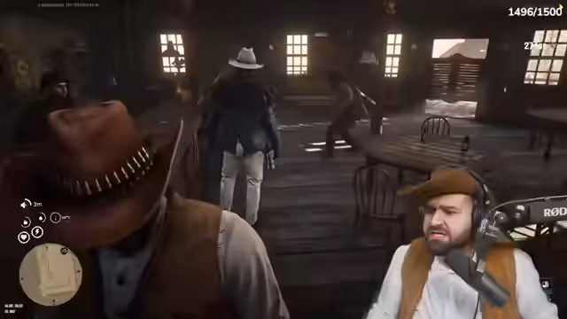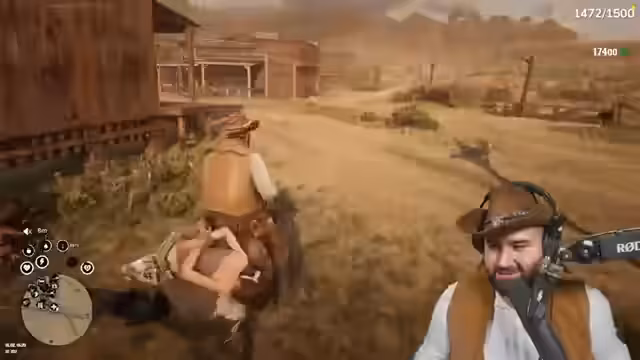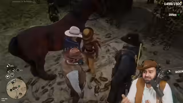01:27:30Das Rollenspiel setzt sich in 'Red Dead Redemption' fort. Der Streamer agiert als Charakter namens Mario Reddington, der durch eine westliche Landschaft reitet. Bei der Konfrontation mit einem anderen Spieler kommt es zu Spannungen, wobei es um eine Brücke geht und der Streamer droht, den anderen zu schießen. Die Interaktionen sind voller Provokation und Dynamik, typisch für das Genre des Wilden Westens.