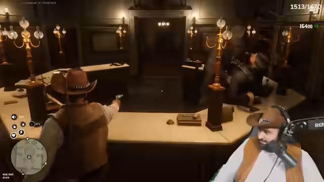 06:07:05Der Stream beginnt mitten in einem chaotischen Szenario, bei dem der Streamer in einen Banküberfall gerät. Er beschreibt die Situation mit bewaffneten Personen und Marshalinside, die ihn beobachten. Sein Ziel ist es, auf ein Dach zu gelangen, um die Lage zu überblicken und die Bank aus der Ferne zu überwachen. Dies führt zu einem unkoordinierten, taktisch fragwürdigen Vorgehen, bei dem er sich selbst und seine vermeintlichen Kameraden in Gefahr bringt und im Bankgebäude gefangen ist.