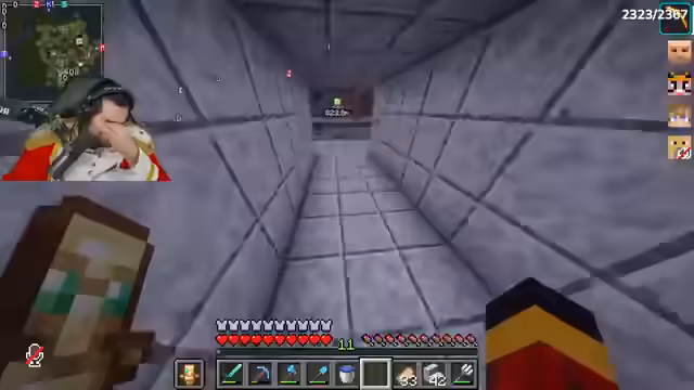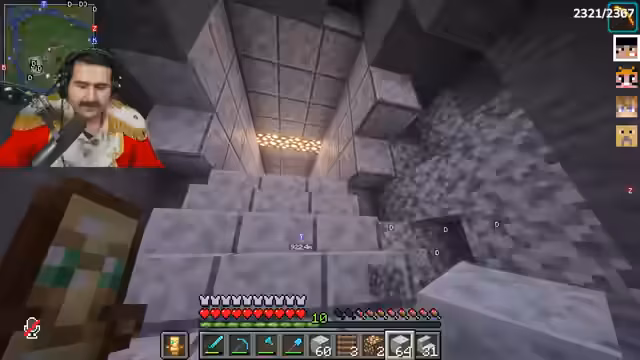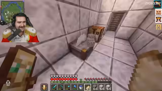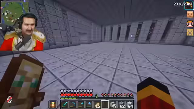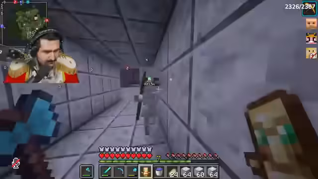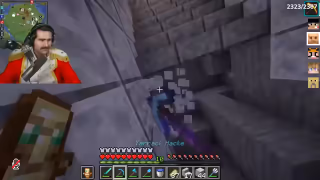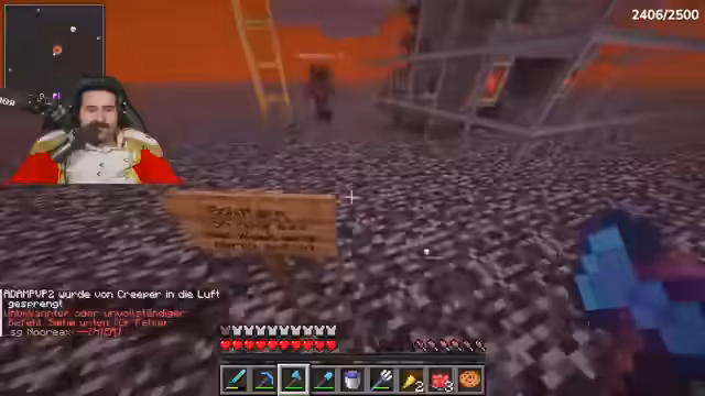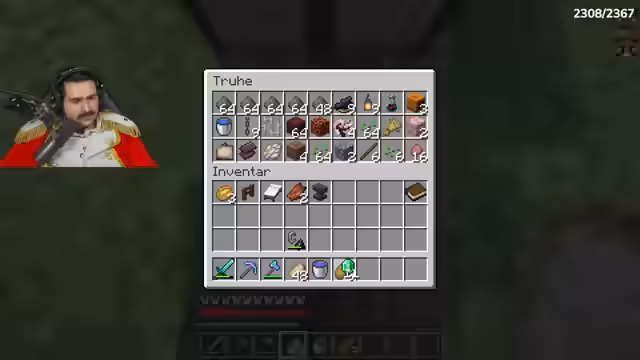 00:08:52Der Streamer sammelt Bauplanungen für den Bunker, darunter Steinziegel, Goldbarren und Poliertem Diorit. Er betont die Wichtigkeit von Closedorn (Obsidian) und findet noch ein paar Vorräte. Es entsteht Konflikt, als er feststellt, dass sein Geheimversteck gesprengt wurde – vermutlich von Onkel Monke mit TNT. Während der Suche nach wichtigen Items wie Smaragden (die fehlen) und einer Nether-Chest, diskutiert er eine mögliche Allianz mit Noriax, um den Rücken freizuhaben. Das Ziel bleibt: zum Café gehen und dort den Bunker bauen.