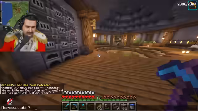 00:05:59Der Stream beginnt mit technischen Problemen auf dem FitnaCraft-Server, da nur wenige Spieler online sind und der Server abstürzt. Es wird ein Winter-Event erwähnt. Nachdem er sich umgezogen hat, stellt er fest, dass Noriax online ist und eine Nachtschicht eingestellt hat. Der Plan für den Stream wird offengelegt: Sie bauen einen speziellen Bunker mit erhöhter Haltbarkeit (3) neben dem Café von Aliboumai. Dafür müssen zuerst Diamant-Spitzhacken repariert werden. Er zeigt sein geheimes Versteck mit Poliertem Diorit, den er nachts gefarmt hat, und bereitet sich auf die Expedition vor.
