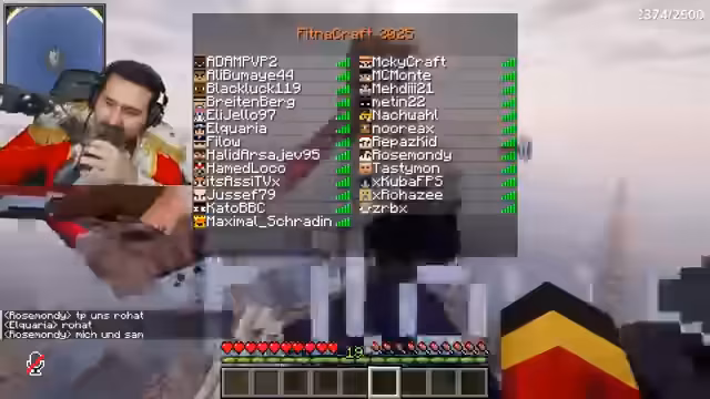 06:14:31Der fertiggestellte Bunker wird präsentiert, inklusive eines Aquarians als Durchgangsbereich und Lagerraum. Gleichzeitig wird eine Undercover-Allianz für das Hunger-Games-Event geschmiedet, bei der Teilnehmer wie Micky und Schradin gemeinsam agieren, um gegnerische Spieler auszuschalten. Der Bunker dient als sicherer Treffpunkt für strategische Absprachen und wird als private Alternative zur häufig zerstörten Burg positioniert.