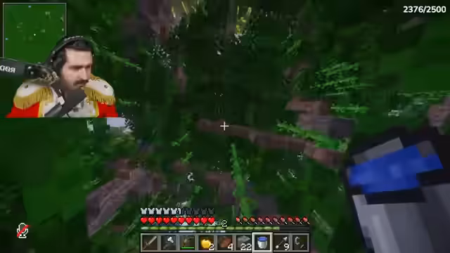 00:21:24Nachdem der ursprüngliche Bauplatz (über dem Café) durch ein Casino-Projekt blockiert ist, verlegt man den Standort unter das Café. Der Bau des Bunkers beginnt mit Steinziegeln und anderen Materialien. Parallel dazu verbessert der Streamer Werkzeuge: Er repariert eine Diamant-Spitzhacke mit Haltbarkeit 3 und optimiert sein Schwert. Er plant, einen Dreizack zu bauen, um im Wasser fliegen zu können, und braucht dafür Holzfarmen. Es gibt eine Unterbrechung durch eine Konversation mit Noriax über Bücher für Verzauberungen.