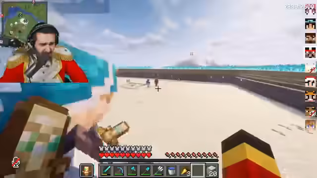 05:02:31Es kommt zu einem Streit, nachdem Ali versehentlich den Bunker oder umliegende Strukturen beschädigt. Der Streamer wirft Ali vor, ohne Rücksicht auf die Gemeinschaftsregeln zu handeln und das Bauwerk zu gefährden. Die Spannung eskaliert zu einem PvP-Kampf, bei dem beide Seiten mit Schwertern und Rüstungen gegeneinander antreten. Während des Kampfes sind zusätzliche Spieler beteiligt, die für zusätzliche Chaos-Elemente sorgen. Nach einem intensiven Duell wird der Kampf schließlich beendet, ohne dass klare Sieger feststehen. Der Streamer nutzt die Gelegenheit, um auf die Wichtigkeit von Regeln und Respekt im Bau-Projekt hinzuweisen.