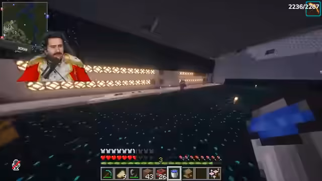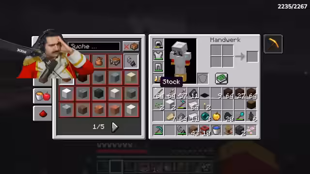 00:02:35Nach dem Start des Minecraft-Spiels überprüft der Streamer zunächst den Zustand seiner Basis und stellt fest, dass alles intakt ist. Es folgen Diskussionen über optische Verbesserungen der Burg, insbesondere im Bereich eines Aquariums. Mehrere Gestaltungsvorschläge für einen zentralen Bunker mit integriertem Fischbecken und Tischen werden vom Chat und dem Streamer gemeinsam entwickelt und verworfen, bis eine provisorische Skizze erstellt wird.