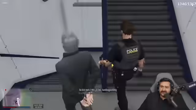 05:39:45Der Stream beginnt mit einem surrealen Krankenhausaufenthalt, bei dem um eine medizinische Behandlung gebeten wird, bevor die Szene abrupt in eine Limousine wechselt. Dort herrscht große Unruhe, da der Fahrer den Weg nicht kennt und der Streamer auf die Ankunft seiner Frau wartet. Ein maskierter Mann sorgt für Panik, da er angeblich verfolgt wird, was die Situation zusätzlich verkompliziert und für eine anhaltende Action sorgt.