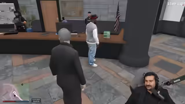 06:50:31Nach dem Servercrash folgt eine lange Phase der Technikprobleme und der Versuch, den Stream wiederherzustellen. Danach wird ein Spielszenario mit Mafiaklischees aufgebaut, in dem der Streamer als Boss in eine Villa eindringt und eine verdächtige Person durchsuchen will, um Waffen zu finden. Diese Szene bleibt unvollständig, da die durchsuchte Person plötzlich flieht.