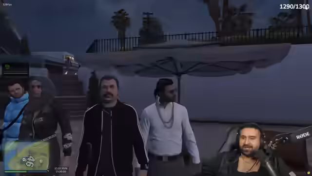 03:56:11Die Szene wechselt zu einer chaotischen Autofahrt durch die Spielwelt, bei der die Gruppe eine Musikbox bei sich hat. Die Dynamik der Gruppe ist angespannt, es kommt zu lautstarken Auseinandersetzungen und Beschimpfungen untereinander. Dabei wird ein vermeintlicher Verrat diskutiert und ein Anführer verdächtigt. Ein beteiligter Spieler wird aufgrund seiner Nationalität und eines Vorfalls mit der Polizei diffamiert, was zu einem hitzigen Streit führt, der sich schnell auf die gesamte Gruppe auswirkt.