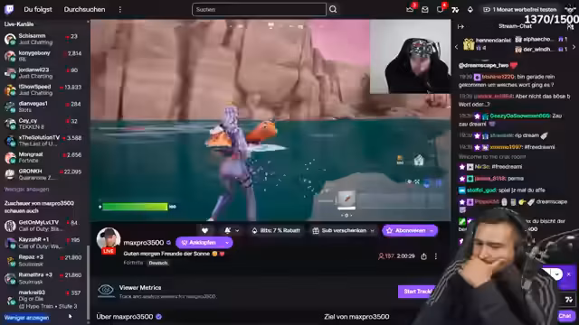 Es wurde über die persönlichen Abnehmerziele und aktuellen Fortschritte berichtet. Zudem wurden zwei neue Koop-Spiele präsentiert. Der Höhepunkt war der geplatzte Versuch, ein gemeinsames Fortnite-Spiel mit einem anderen Streamer zu organisieren. Zum Ausgleich wurde ein interaktives Fahrschul-Quiz gestartet.