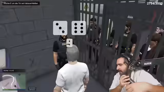 06:09:04Nachdem sie sich in einer Basis versteckt haben, wird der Streamer bei einem gescheiterten Versuch, eine Waffe zu kaufen, gefasst und ins Gefängnis gebracht. Dort angekommen, versuchen seine 'Brüder', ihn freizubekommen, was jedoch misslingt, und der Streamer muss eine Haftstratum antreten.