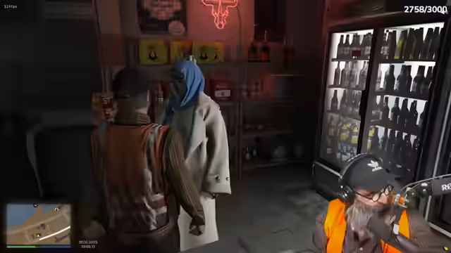 01:19:47Der Charakter begeht in einem Lokal einen Diebstahl, indem er einen afk stehenden Spieler ausraubt, um wichtige Ressourcen zu beschaffen. Anschließend kehrt er zu den Vipers zurück und verhandelt mit dem Anführer Tamerlan. Er offenbart seine Situation: Die Polizei und die Wipers jagen ihn. Er bittet um Asyl und Unterstützung im Austausch für seine Loyalität.