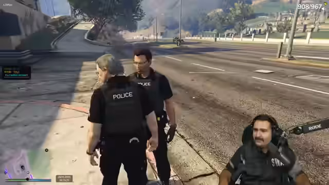 02:19:35Während der Streifenfahrt in Los Santos kommt es zu mehreren Interaktionen mit Bürgern. Ein Kollege wird aufgrund von rücksichtslosem Verfahren zur Rede gestellt. Auch die uneinheitliche Handhabung von Absperrungen wird thematisiert und eine Verwarnung ausgesprochen. Parallel dazu findet ein persönliches Telefonat statt, bei dem der Streifenpartner wegen privater Probleme in die Kritik gerät.