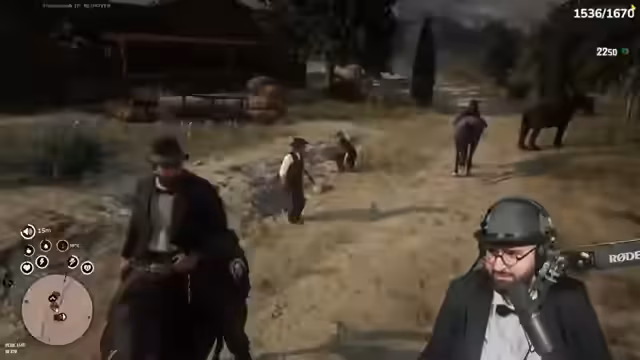 00:59:52Nachdem der Streamer seinen Charakter 'Mario Reddington' für die Geschäftsmann-Role angezogen hat, beginnt das Gameplay. Eine zentrale Mission führt ihn in die Stadt Rhodes, wo er auf negative Reaktionen der NPC stößt. Die Interaktion wird aggressiv, als er von einerNPC-Dame als 'Dirne' bezeichnet wird. Während des Ritts zu seinem neuen Zielort kommt es zu mehreren kleineren Spannungen mit anderen Spielern und Wildtieren. Die Mission konzentriert sich darauf, an den Ort zu gelangen, der den Charakter am meisten hasst, um dort Rache zu nehmen.