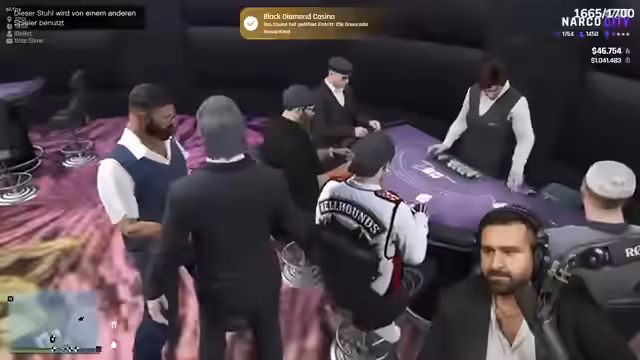 01:51:50Nach dem Verlust erheblicher Summen an virtuellem Geld im Casino äußert der Streamer seinen Frust und weist darauf hin, dass der Spielsucht Gefahren drohen. Trotz der finanziellen Verluste plant er sofort den nächsten Spielzug. Der Fokus verschiebt sich auf Rollenspiel-Aktivitäten, wie das Betreten von Laia's Bar, und Ankündigungen für zukünftige Inhalte mit anderen Streamern wie Ali und Gigant.