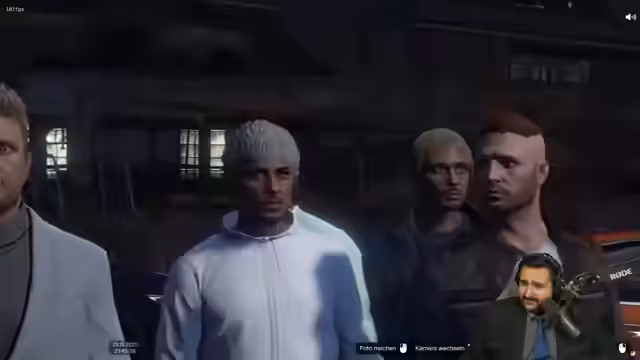 01:56:09Zwei weitere Personen, die von dem Flüchtlingsheim gehört haben, möchten sich anmelden. Sie werden nach 300 Dollar gefragt, die sie am Bankautomaten abheben sollen. Währenddessen wird das Motto 'Ich bin ein Flüchtling, ich zahle Geld, dass ich mitmache' gesungen. Es kommt zu einem Diebstahl, bei dem das eingesammelte Geld von einem Flüchtling gestohlen wird. Die Situation wird chaotisch, und es wird versucht, das Geld zurückzubekommen. Ein Flüchtling wird beleidigt, weil er angeblich 2,91 % Türke ist, was zu einer weiteren Beleidigungsaktion führt, bei der alle 'Du Schwanz! Du Bastard! Verpiss dich!' rufen sollen. Ein schwarzer Porsche, der zuvor Flüchtlinge überfahren hat, sorgt für weitere Aufregung. Aiden Cross erhält einen weiteren Minuspunkt, weil er wieder aus der Reihe getanzt ist, während Enzo Braun aus Indien für sein gutes Verhalten einen Stern erhält. Die Gruppe singt weiterhin Parolen wie 'Ich bin ein Flüchtling, ich steche euch alle ab an meiner Ruhm' und 'Ich laufe über rot', um ihre Integration zu demonstrieren. Ein Flüchtling findet eine Pistole im Auto, die sofort abgegeben werden muss. Der Stream endet mit der Aufforderung, zusammenzubleiben und Reihen zu bilden, während weitere Anmeldungen bearbeitet werden.