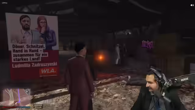 03:04:46Nach einer chaotischen Szene, in der der Streamer versucht, Flüchtlinge zu organisieren und sich über mangelnde Unterkünfte beschwert, kündigt er eine „Spray-Show“ an. Er versammelt die Flüchtlinge in einem Fahrzeug und fordert sie auf, sich bereit zu machen. Während der Fahrt kommt es zu weiteren chaotischen Szenen und Diskussionen, unter anderem über die Rolle von Fatma, die als seine Frau bezeichnet wird, aber hinten im Fahrzeug mit anderen Männern sitzt. Der Streamer verteilt Sprühdosen an alle Flüchtlinge und plant, mit ihnen eine Wand zu besprühen. Er spricht auch mit einem Unbekannten mit Maske, der nicht teilnehmen darf, und lehnt Spenden ab, da ihm die Zuschauer wichtiger sind.