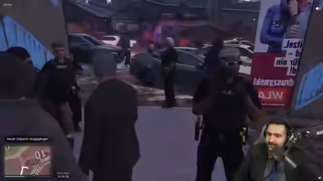 03:26:09Der Streamer ist entschlossen, seine Frau aus dem Gefängnis zu holen, obwohl seine Begleiter ihn warnen, dass er dann ebenfalls festgenommen wird. Er bestellt ein Taxi und fährt zum PD, wo er sich mit Polizisten konfrontiert sieht. Er wird beschuldigt, Flüchtlinge illegal transportiert und sogar für sie getanzt zu haben. Es kommt zu hitzigen Diskussionen, bei denen er die Polizisten als „Arschkriecher“ bezeichnet und ihnen vorwirft, ihre Macht zu missbrauchen. Ein Polizist namens Robert Schröter von einer „mächtigsten Partei“ erscheint und hinterfragt die Legitimität des Flüchtlingsheims und die Papiere der Flüchtlinge. Der Streamer lädt ihn und seine Leute zu einer Party in „Bahamas Mamas“ ein, um die Situation zu entschärfen. Er plant, mit einigen Flüchtlingen dorthin zu gehen und erwartet eine „Rave-Party“ mit Drogen.