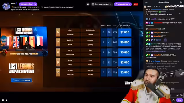 06:44:44Das Team kämpft mit erheblichen technischen und organisatorischen Problemen. Während die Vorbereitungen für das große Turnier laufen, fällt der Spieler Islam aufgrund fehlender Internetverbindung aus, was den Start verzögert. Der Streamer unternimmt zahlreiche Versuche, das Problem zu lösen, und schlägt eine faire Regelung vor: Als Ausgleich für den Ausfall soll das Team mit drei Spielern antreten und eine zusätzliche Waffe erhalten. Dies wird jedoch von der Turnierleitung vorerst abgelehnt, was Frustration und Ungerechtigkeitsempfinden im Chat hervorruft.