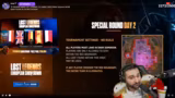 05:43:35Der Streamer erläutert die aktuellen Nerf-Regeln des Turniers: Die Top-Teams erhalten Nerfs, während die unteren Teams Buffs bekommen. Er erklärt, dass das Team von Jacob und Flixi derzeit einen SMG-Nerf hat und daher nur diese Waffe nutzen dürfen. Anschließend werden die Ergebnisse der vorherigen Runden vorgestellt, bei denen das Team auf Platz 16 liegt, was den Streamer frustriert, da sie glauben, dass ihre Kills nicht korrekt gezählt wurden.