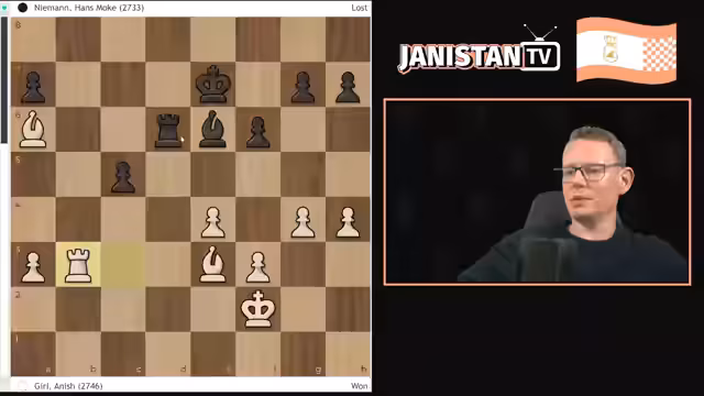 01:46:24Anish Giris Spielstil wird als flexibel und extrem theoriestark beschrieben. Er kann als Weißer alle Haupt-Eröffnungen (E4, D4, C4) und als Schwarzer vielfältige Systeme spielen. Seine größten Stärken sind die tiefe Eröffnungsvorbereitung und die gute technische Spielweise in der Mittelspielphase, wo er mit seinem Läuferpaar Druck aufbaut und seine Klasse ausspielt. Ein Beispiel aus seiner Partie gegen Hans Niemann im Grand Swiss wird zur Illustration gezeigt.