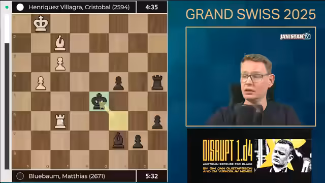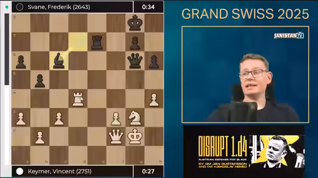 Die vierte Runde des Grand Swiss Turniers bringt ein aufregendes Schachduell zwischen Vincent Keymer und Frederik Svane. Beide Spieler zeigen hohe Konzentration von den ersten Zügen an. Keymer setzt auf soliden Aufbau, während Svane mit aktiven Figuren kontert. Das Mittelspiel entwickelt sich zu einem taktischen Schlagabtausch, bei dem beide Seiten nach Schwachstellen suchen. Entscheidende Moment entstehen im Endspiel, wo präzise Berechnungen den Ausgang bestimmen. Die Analyse beleuchtet die Schlüsselzüge, die den Verlauf der Partie prägten und die strategischen Konzepte der beiden Kontrahenten.
