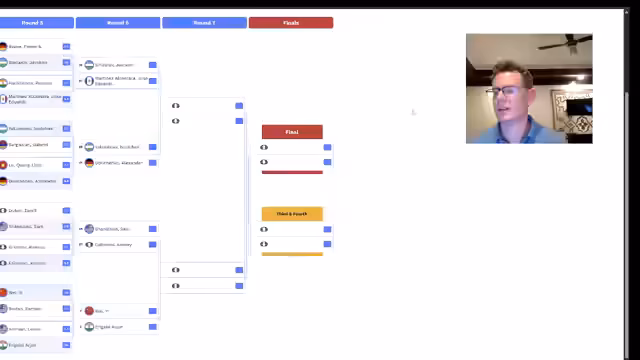 00:42:49In der 10-Minuten-Partie übernahm Donchenko mit Schwarz erneut die Initiative und schnürte seinen Gegner ein. Trotz eines langen Kampfes und schwieriger Endspiele gelang es Donchenko, die Partie zu gewinnen und erneut in Führung zu gehen. Somit stand es wieder 1:0 für Donchenko, der mit Weiß erneut ein Remis zum Weiterkommen benötigte. Doch auch diesmal konnte er die Führung nicht halten. In einer weiteren Kampfpartie setzte Alex auf Angriff mit Borna Efron, was sich als zu riskant erwies. Le Quang nutzte dies aus und gewann die Partie mit einem schönen Trick, wodurch es erneut 1:1 stand. Das Match ging ins Blitzschach (5 Minuten plus 3 Sekunden), eine Disziplin, in der Le Quang als ehemaliger Blitzweltmeister besonders stark ist, was einen harten Sprung für Donchenko darstellte.