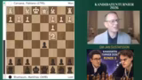 00:22:46Matthias Blühbaum traf mit den schwarzen Steinen auf den Top-Favoriten Fabiano Caruana. Caruana wich früh von der Hauptvariante ab und spielte den ungewöhnlichen Springer nach C4, was Blühbaum aus der Routine holte. Nach längerer Überlegung wählte Blühbaum Bauer nach G6, was Computerzügen zufolge nicht optimal war. Caruana steigerte den Druck kontinuierlich und zwang Blühbaum in eine schwierige Verteidigung. Blühbaum entschied sich gegen den vorgeschlagenen Springerzug, der die Partie hätte komplizieren können, und geriet zusehends unter Druck.