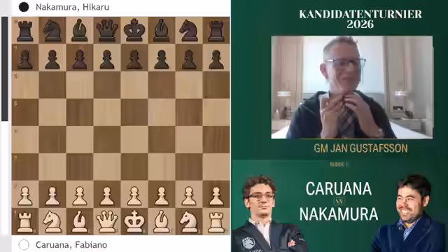 Im ersten Duell des Kandidatenturniers konnte Fabiano Caruana gegen Hikaru Nakamura punkten. Durch ein strategisches Bauernopfer baute er massiven Druck auf. Nakamuras fehlerhafte Verteidigung führte letztlich zur Niederlage.