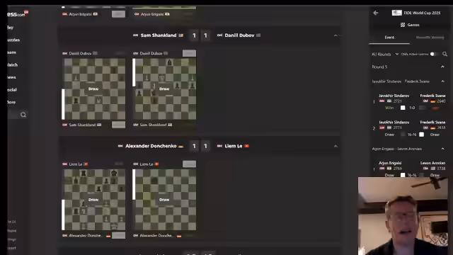 00:32:19Der Streamer gibt einen Spoiler zu den Ergebnissen der deutschen Spieler im Achtelfinale. Frederik Svane ist ausgeschieden, nachdem er gegen den starken 19-jährigen Usbeken Nodirbek Abdusattorov (Zindarov) spielte. Svane hatte zuvor bereits Gukesh, den Weltmeister, und Saksian aus dem Turnier geworfen. Trotz einer starken Verteidigungsleistung und einigen unglücklichen Entscheidungen in der ersten Partie, die er verlor, konnte er in der zweiten Partie kein Remis erzielen und schied aus. Der Streamer lobt Svanes Kampfgeist und seine beeindruckende Spielstärke, die seine aktuelle Elo-Zahl nicht vollständig widerspiegelt. Alexander Donchenko hingegen ist der letzte verbliebene deutsche Spieler im Turnier. Er hat ein außergewöhnliches Turnier gespielt, indem er Anish Giri und Matthias Blühbaum, beides Kandidatenturnierteilnehmer, in den klassischen Partien besiegte. Donchenko traf im Achtelfinale auf Le Quang Liem, einen grundsoliden 2700er-Spieler. Obwohl Donchenko in der zweiten Partie auf Gewinn stand, entglitt ihm der Sieg in einem dramatischen Endspiel, was zu einem Tiebreak führte. Der Streamer drückt Donchenko die Daumen für den Tiebreak, der am nächsten Morgen stattfindet und nach einem komplexen System aus verschiedenen Schnellschachformaten bis hin zum Armageddon gespielt wird.