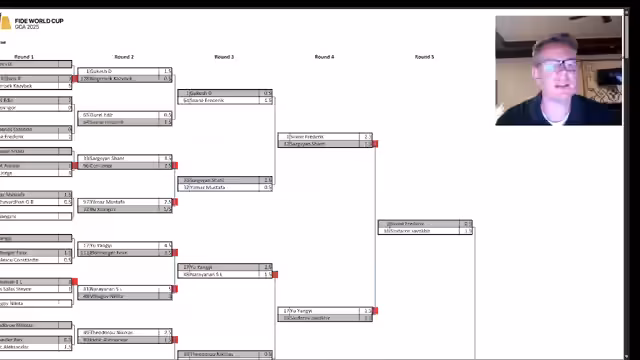 01:13:59Das Turnier wird als extrem spannend beschrieben, mit vielen Überraschungen und dem Ausscheiden hochkarätiger Spieler. Ein besonderer Fokus liegt auf Vincent Keymer, dessen Teilnahme am World Cup als Weg zum Kandidatenturnier galt. Keymer schlug zunächst starke Gegner wie Kovajov (2:0) und Pranesh, ein super Talent, der Coach Kollas besiegt hatte. Trotzdem musste sich Keymer in einem dramatischen Match gegen André Jespenko geschlagen geben. Jespenko, der als nächster russischer Schach-Superstar gehandelt wird und bereits eine Partie gegen Magnus Carlsen gewonnen hatte, erwischte im Tiebreak den besseren Tag. Keymers Ausscheiden gegen einen extrem starken Spieler mit einer Elo von über 2700 wird als bitter empfunden, nicht nur aus deutscher Sicht. Die Tatsache, dass die Nummer 4 der Welt nicht einmal die Runde der letzten 32 erreichte, verdeutlicht die Härte und Unberechenbarkeit des Formats, in dem viele Favoriten frühzeitig ausscheiden.
