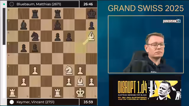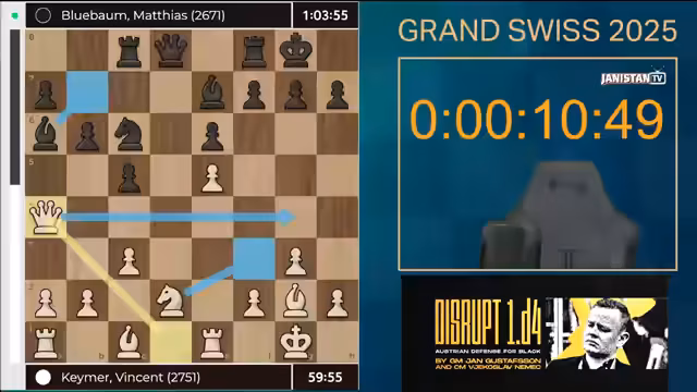 Keymer gegen Bluebaum - der Gipfel in Runde 10 - Grand Swiss 2025