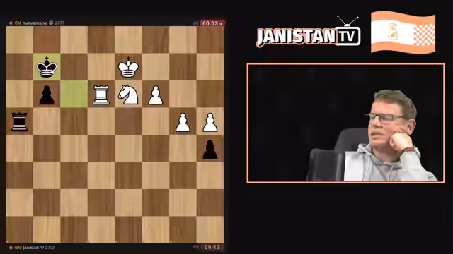 00:45:05Extrem frustrierende Partiephase: Trotz guter Ausgangslage folgt eine Kette von Fehlern (übersehene Matt-Drohungen, Bauerneinbußen). Der Streamer gibt auf und bezeichnet seine Leistung als 'peinlich'. Er entschuldigt sich beim Publikum für die schlechte Leistung ('Mir ist wirklich wahnsinnig unangenehm') und erklärt seinen Rückzug. Das Finale wird als nicht mehr erreichbar eingestuft. Der Dank gilt dem Schachbund für die Organisation, und Zuschauer werden zu einem anderen Kanal ('Schachdeutschland TV') weitergeleitet.