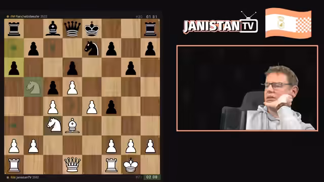 00:20:44Nach der Partie analysiert der Streamer seine Entscheidungen: Das Figurenopfer wird als zu optimistisch eingestuft. Er diskutiert den Einfluss des Zufalls im Blitzschach und vergleicht seine Leistung mit besser vorbereiteten Gegnern. Ein spezifischer Gegner ('Vier Kettoläufer') wird identifiziert, dessen Spielstil (zurückgerockte Rochade, Raumvorteil) als herausfordernd beschrieben wird. Die Turniersituation wird bewertet – Punkte sind nötig, aber eigene Fehler verhindern Erfolge.