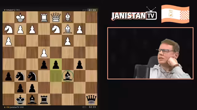 00:12:40Eine laufende Partie wird detailliert beschrieben: Nach der Eröffnung c6 folgen Manöver wie Sprenger A3 und B5. Der Streamer versucht einen Bluff, der jedoch durchschaut wird. Taktische Fehler wie ein überstürztes Figurenopfer werden analysiert, das zu einer schlechten Stellung führt. Reflexionsfehler werden deutlich, als mehrere mögliche Matt-Varianten übersehen werden. Die Partie endet mit einer Fehlbewertung der eigenen Stellung und Frust über übersehene Züge.