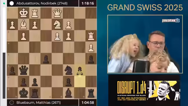 00:50:05Nach eineinhalb Stunden intensiver Kommentierung und Analyse kündigt der Streamer eine Pause an. Der Schachkommentar wird unterbrochen, um eine technische Pause zu machen. Gleichzeitig nutzt die Zeit die Gelegenheit, um mit dem Sohn über die Fernsehzeiten des Wochenendes zu verhandeln. Danach wird der Stream offiziell beendet, bevor die nächste Runde des Grand Swiss beginnt.