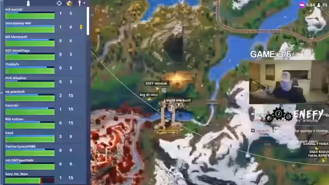 00:00:08Zu Beginn des ersten FNCS-Finalspiels ist die strategische Landung entscheidend. Die主播 entscheidet sich, gemeinsam mit seinem Team auf der rechten Seite der Map zu landen. Das Team findet schnell Waffen und übernimmt eine aggressive Position, wobei sie bereits in der Anfangsphase Kämpfe mit gegnerischen Teams suchen. Es gibt Hinweise auf gute Ausrüstung und eine klare Absicht, früh ins Geschehen einzugreifen, um Punkte zu sammeln.