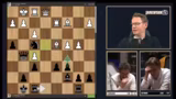 01:38:34Vincent Keymer gerät in massive Zeitnot, während Fabian Caruana einen Vorteil aufbaut. Die Kommentatoren stellen fest, dass Keymers wiederholte, zufällig wirkende Züge, insbesondere H4, ihn in eine strategisch schwierige Position gebracht haben. Caruana nutzt dies aus und dominiert die Partie durch präzise Züge und die Ausnutzung von Keymers Zeitdruck, der dazu führt, dass er wichtige strategische Momente verpasst und sich in schlechteren Stellungen wiederfindet. Die Kommentatoren äußern ihre Frustration über das langsame Spiel von Keymer.
